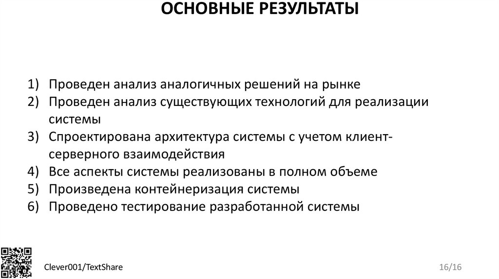 ОСНОВНЫЕ РЕЗУЛЬТАТЫ1) Проведен анализ аналогичных решений на рынке