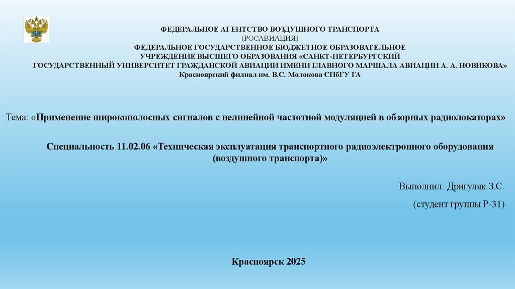 ГОСУДАРСТВЕННЫЙ УНИВЕРСИТЕТ ГРАЖДАНСКОЙ АВИАЦИИ ИМЕНИ ГЛАВНОГО МАРШАЛА АВИАЦИИ А. А. НОВИКОВА»