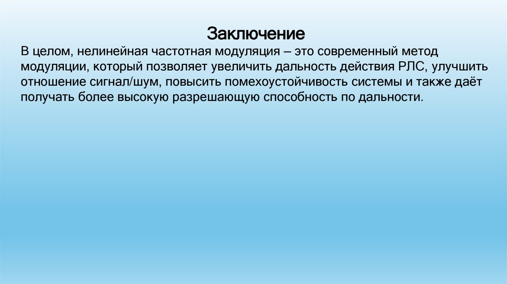 ЗаключениеВ целом, нелинейная частотная модуляция — это современный метод