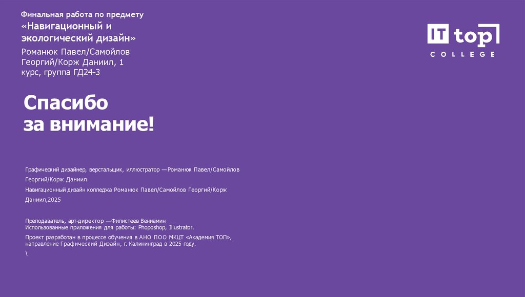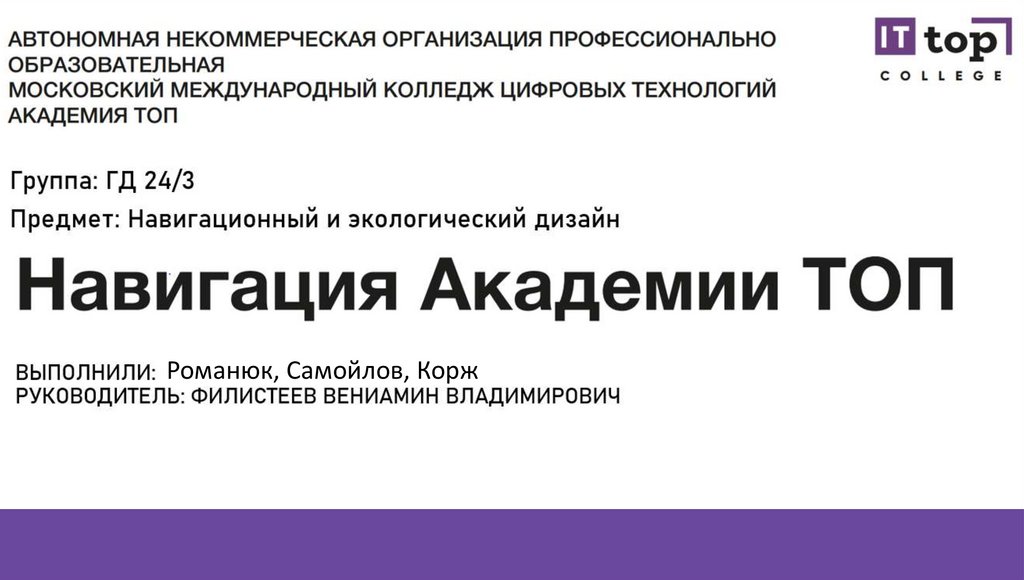 Навигационный дизайн колледжа Романюк Павел/Самойлов Георгий/Корж