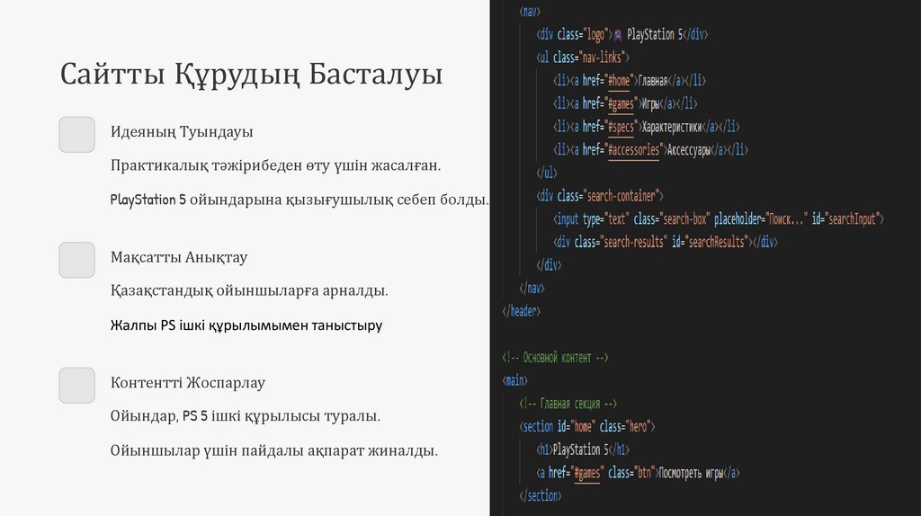 Бұл презентация сайттың қалай құрылғанын көрсетеді,