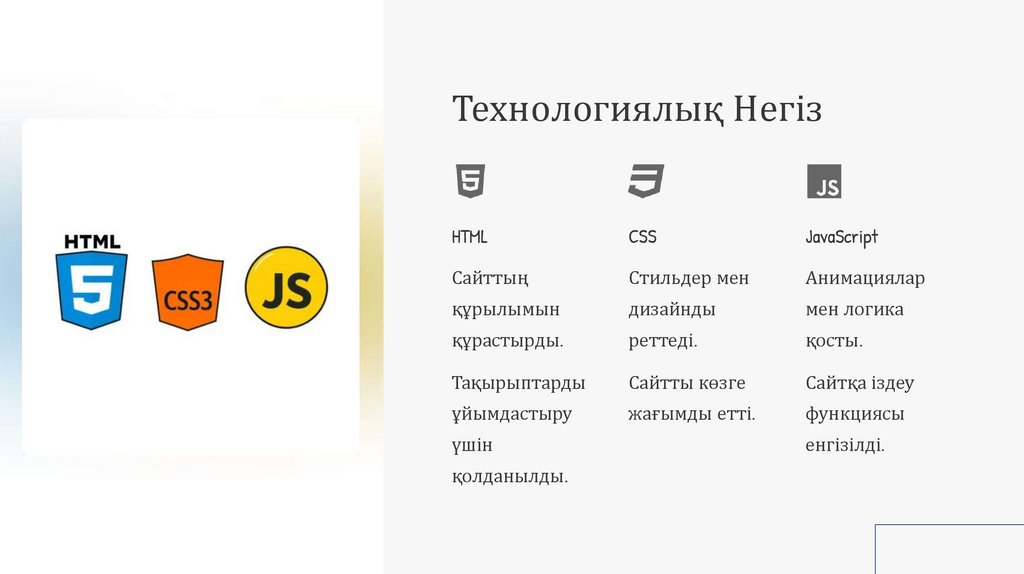 Технологиялық НегізHTML