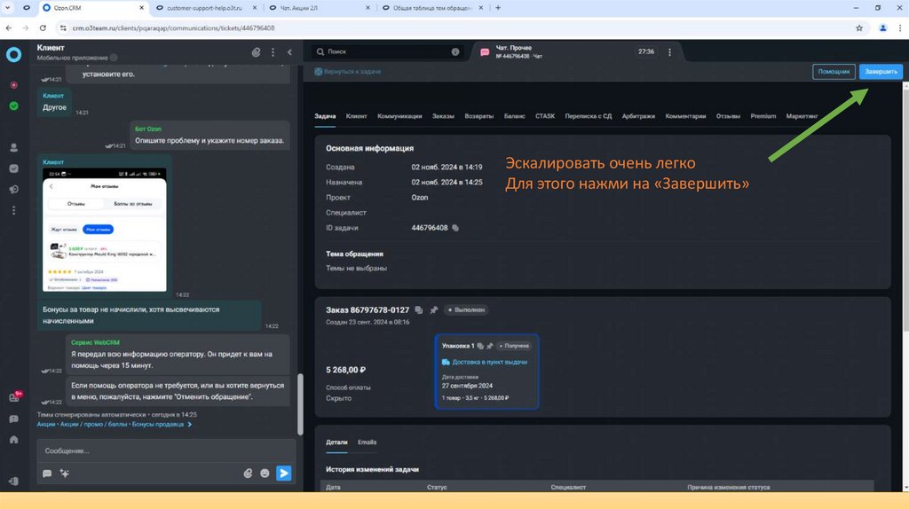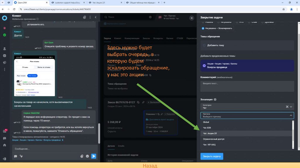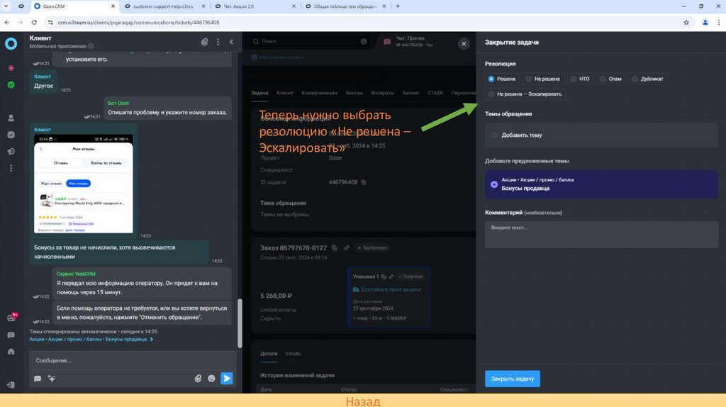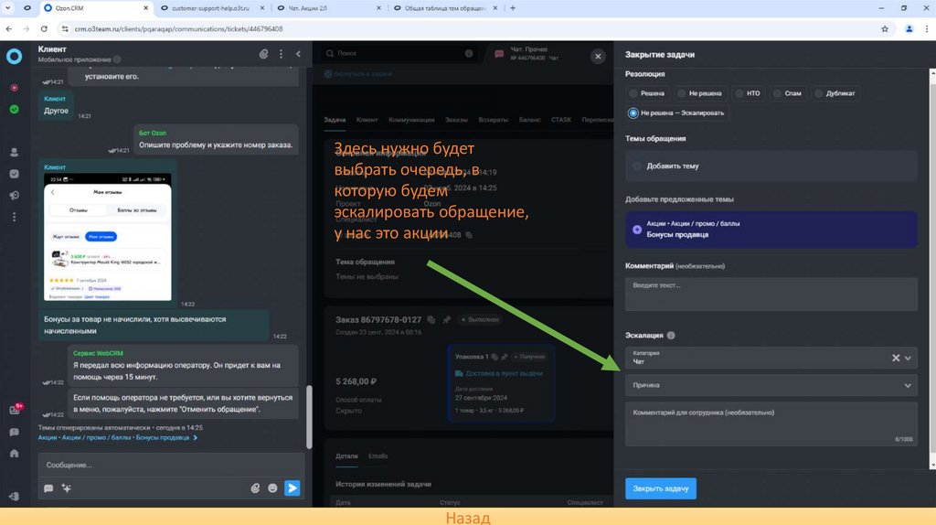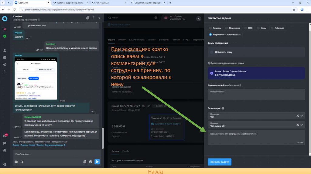 эскалировать обращение,