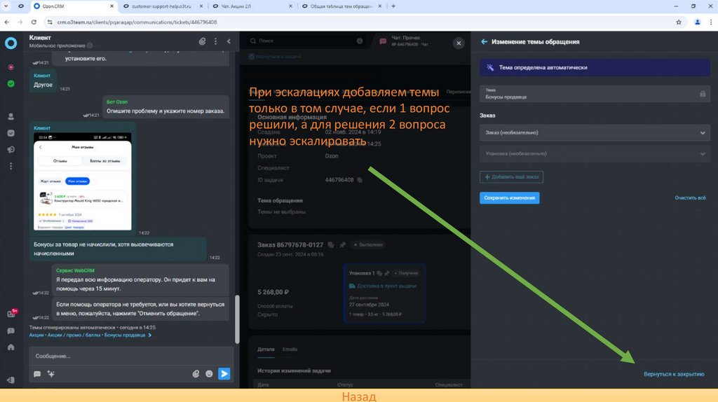 При эскалациях добавляем темытолько в том случае, если 1 вопрос