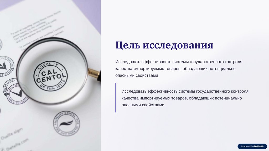 Цель исследованияИсследовать эффективность системы государственного контроля