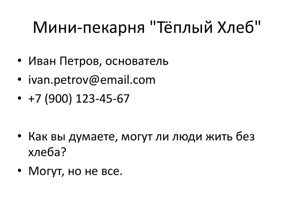 Мини-пекарня "Тёплый Хлеб"• Иван Петров, основатель