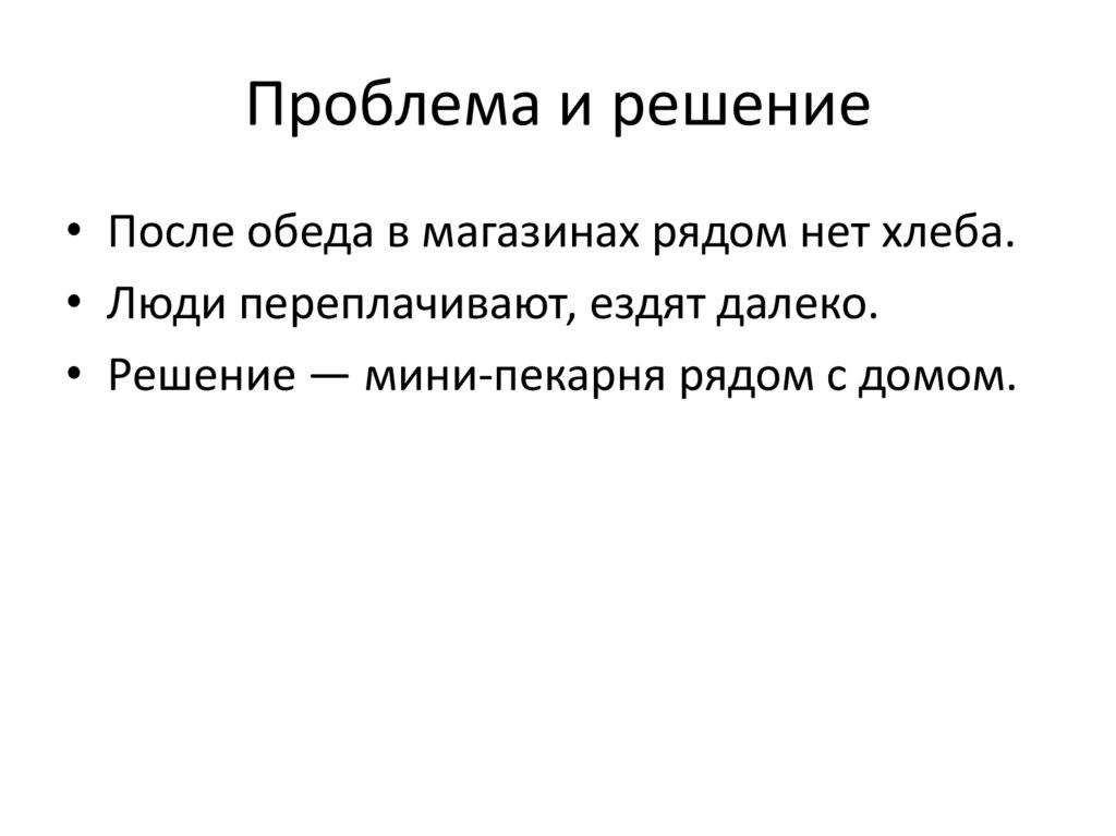 • Решение — мини-пекарня рядом с домом.