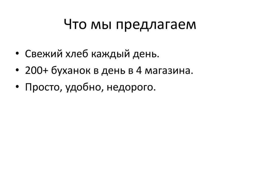 Что мы предлагаем• Свежий хлеб каждый день.