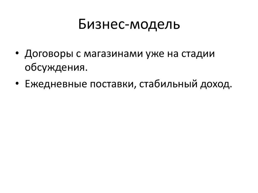 Бизнес-модель• Договоры с магазинами уже на стадии