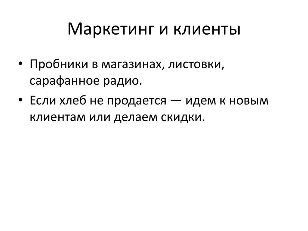 Маркетинг и клиенты• Пробники в магазинах, листовки,