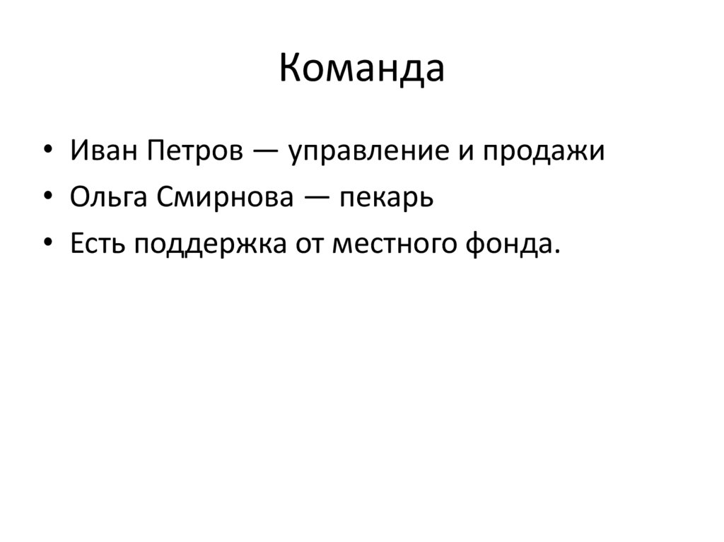 Команда• Иван Петров — управление и продажи