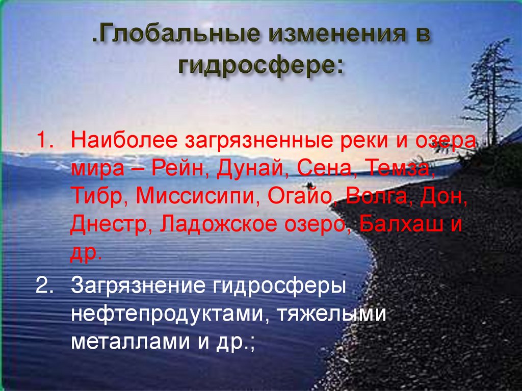 1. Наиболее загрязненные реки и озерамира – Рейн, Дунай, Сена, Темза,