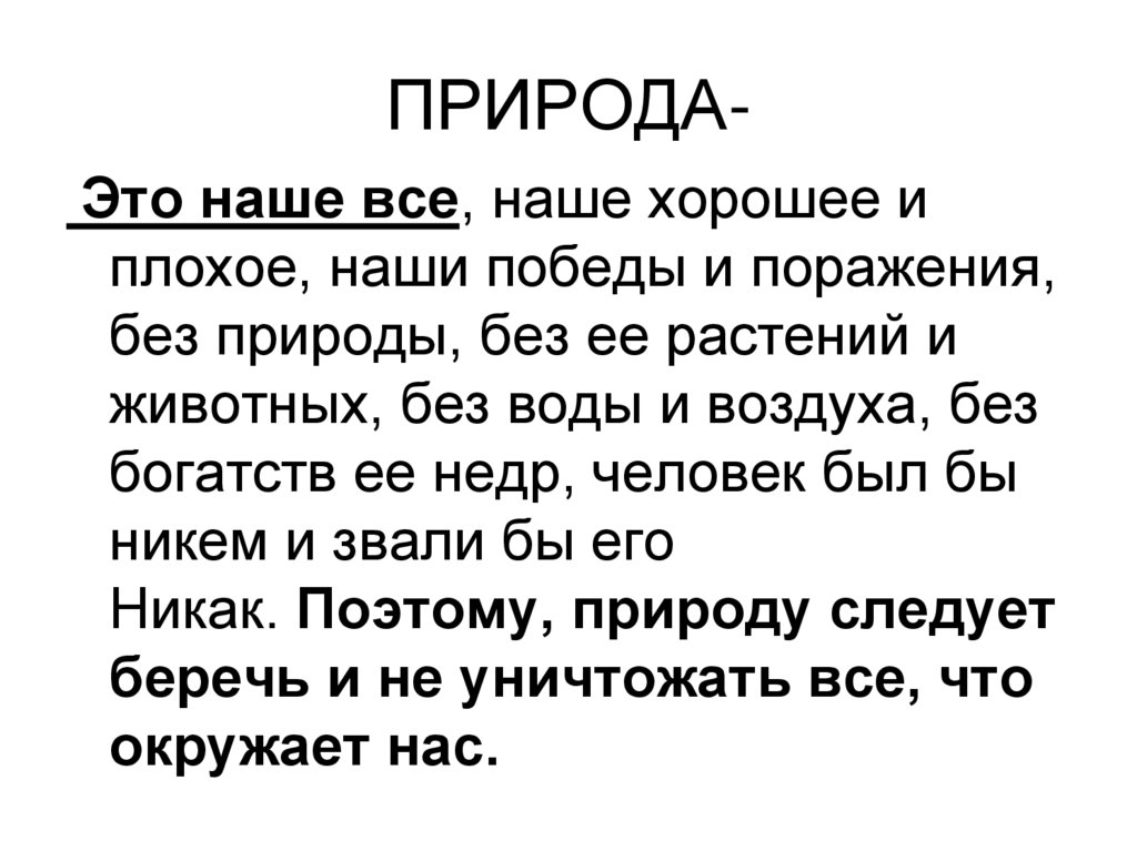 ПРИРОДАЭто наше все, наше хорошее иплохое, наши победы и поражения,