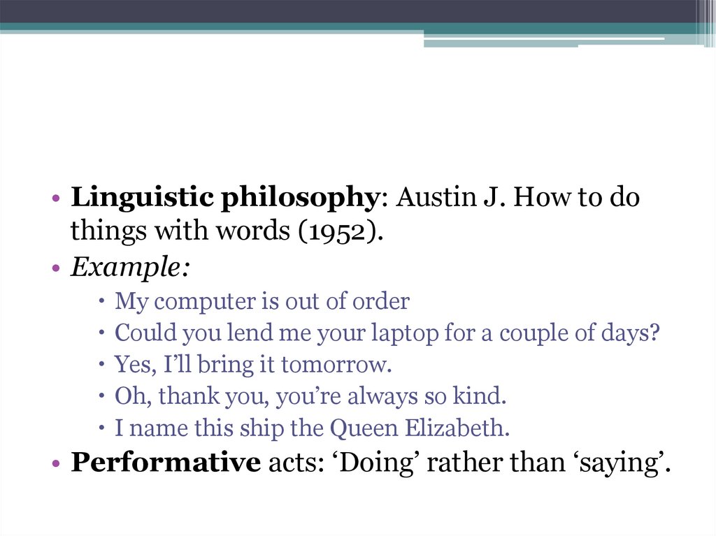 • Linguistic philosophy: Austin J. How to dothings with words (1952).