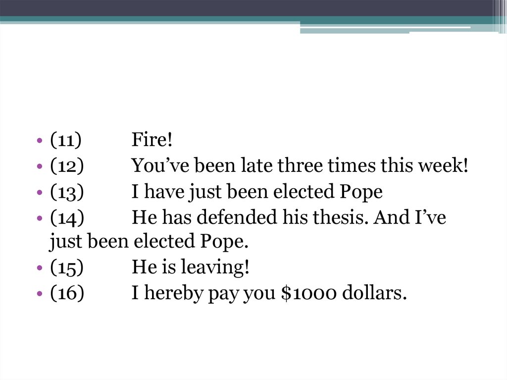 • Performative acts: ‘Doing’ rather than ‘saying’.