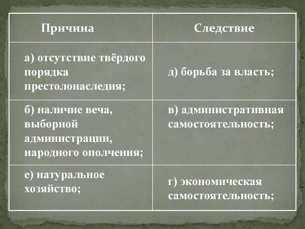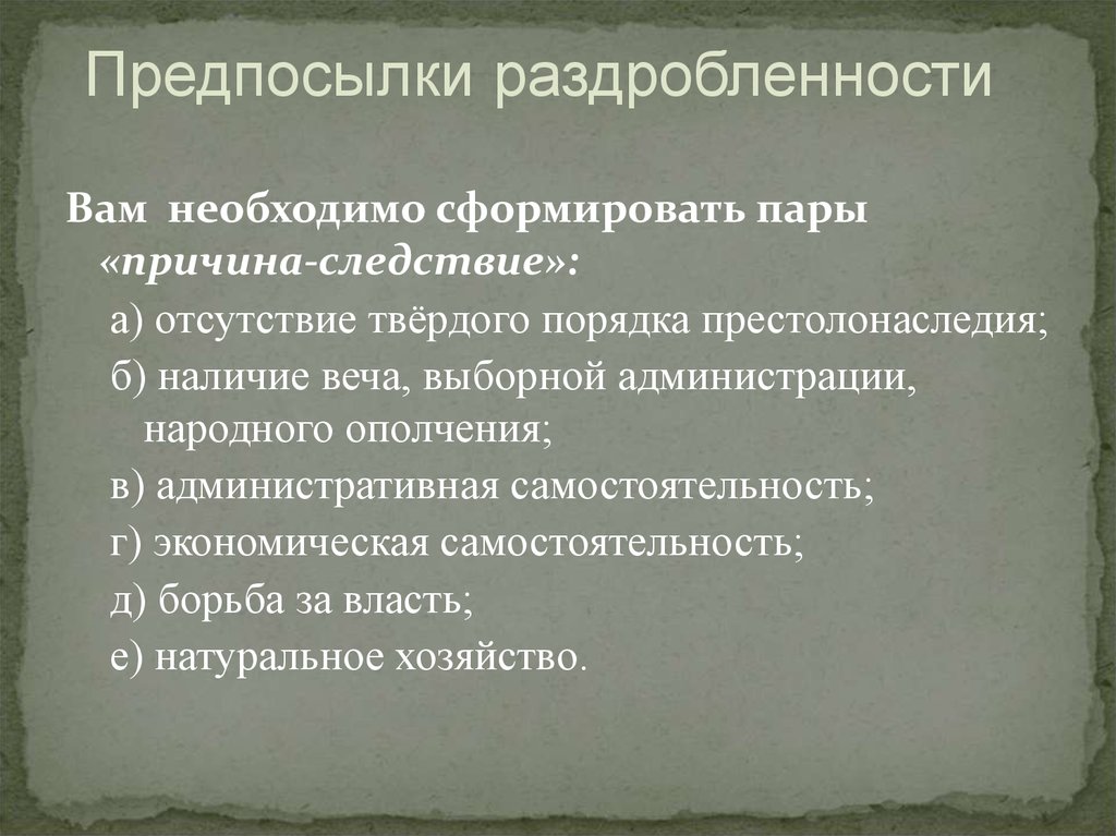 Предпосылки раздробленностиВам необходимо сформировать пары