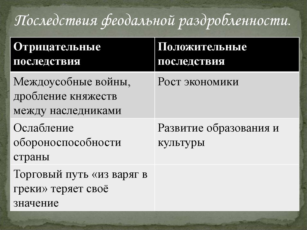 Последствия феодальной раздробленности.Отрицательные
