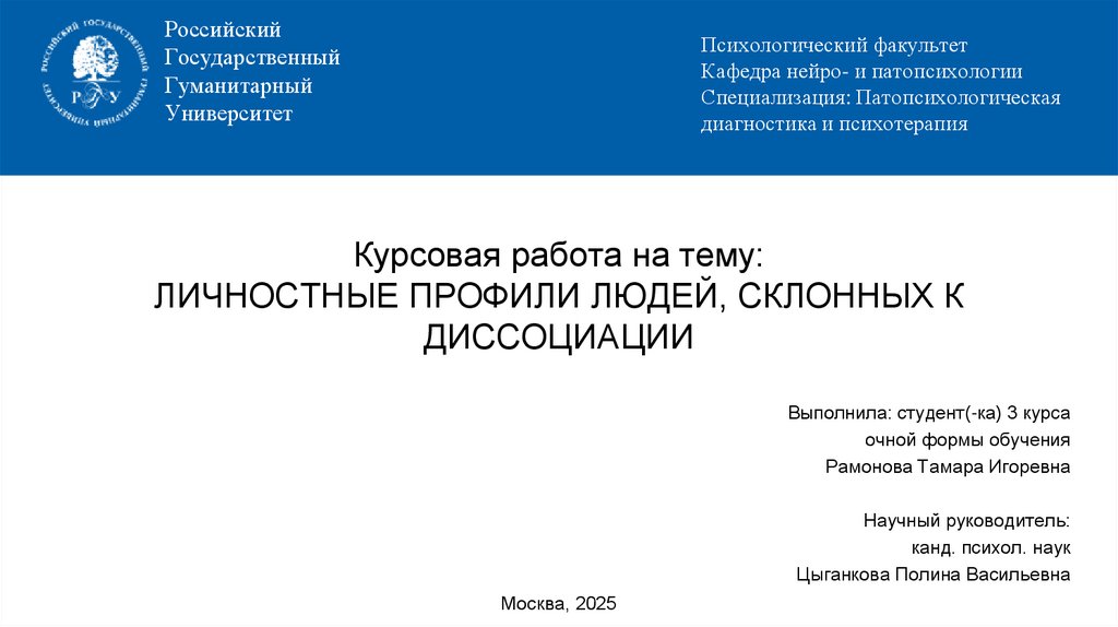 1. Курсовая работа на тему: ЛИЧНОСТНЫЕ ПРОФИЛИ ЛЮДЕЙ, СКЛОННЫХ К ДИССОЦИАЦИИ