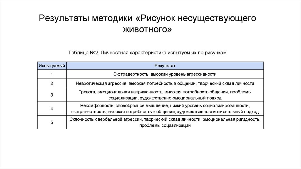 Таблица №2. Личностная характеристика испытуемых по рисункамИспытуемый