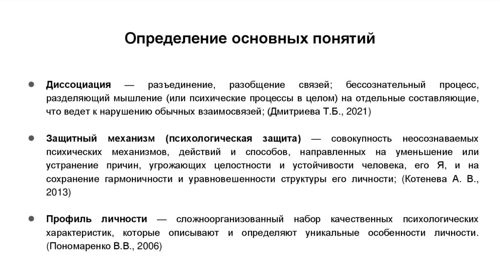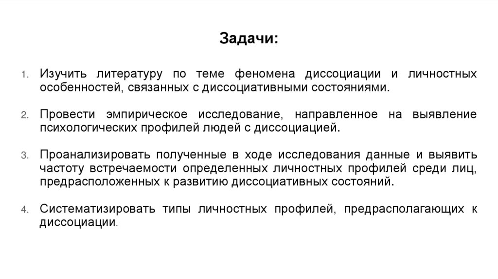 1.Изучить литературу по теме феномена диссоциации и личностных