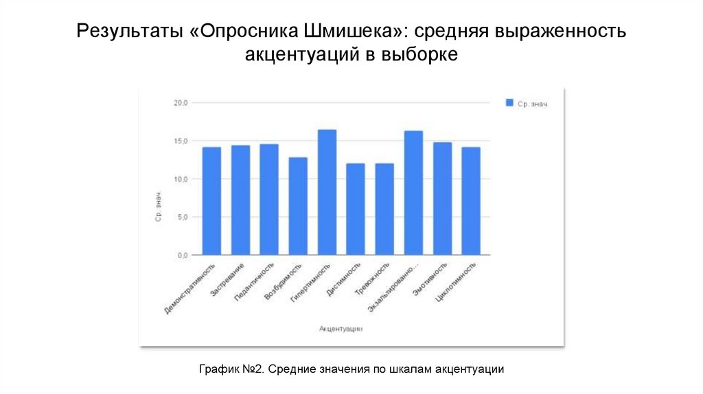 10. Результаты «Опросника Шмишека»: средняя выраженность акцентуаций в выборке