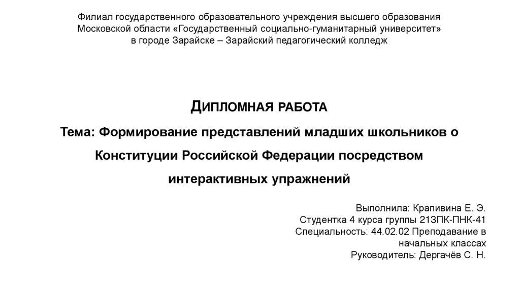 Формирование представлений младших школьников о Конституции Российской Федерации посредством интерактивных упражнений