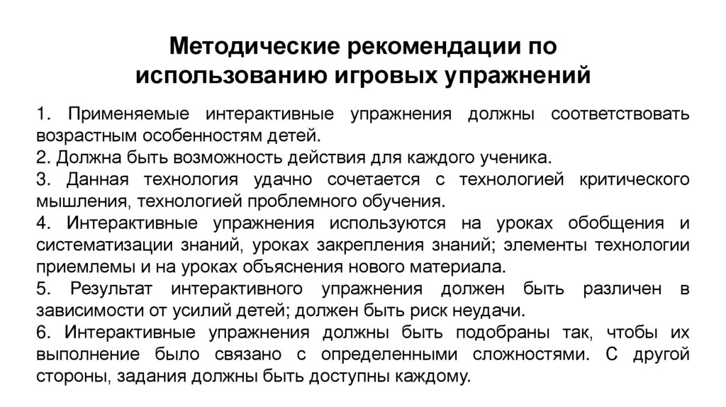 6. Интерактивные упражнения должны быть подобраны так, чтобы их