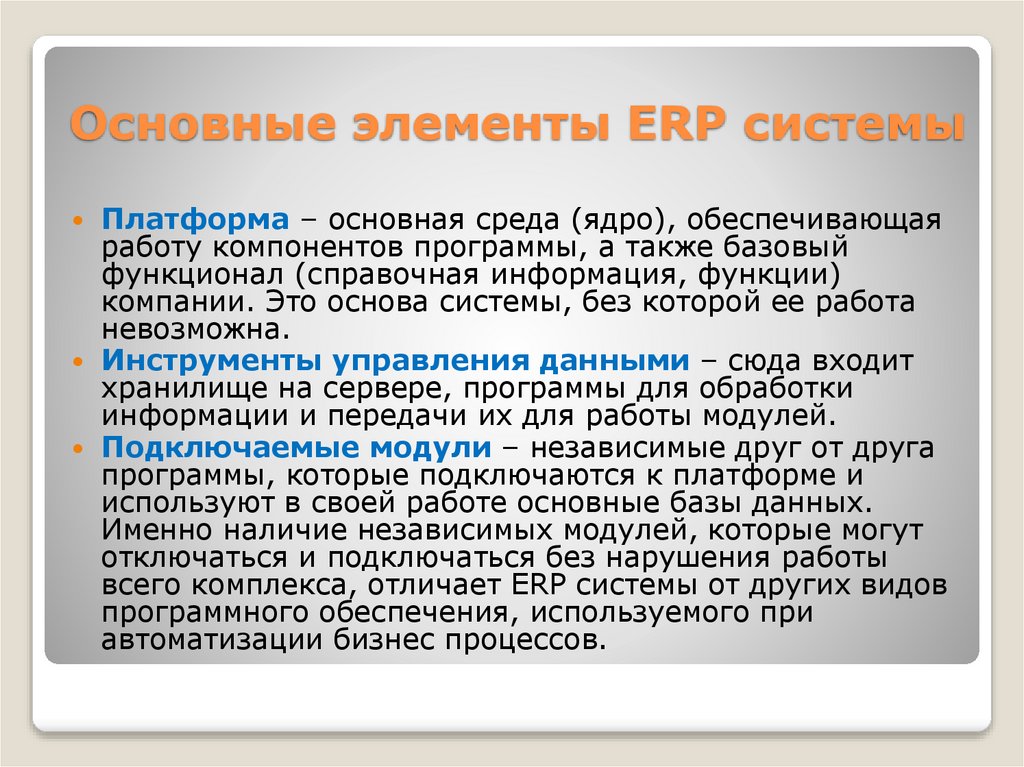 всего комплекса, отличает ERP системы от других видов