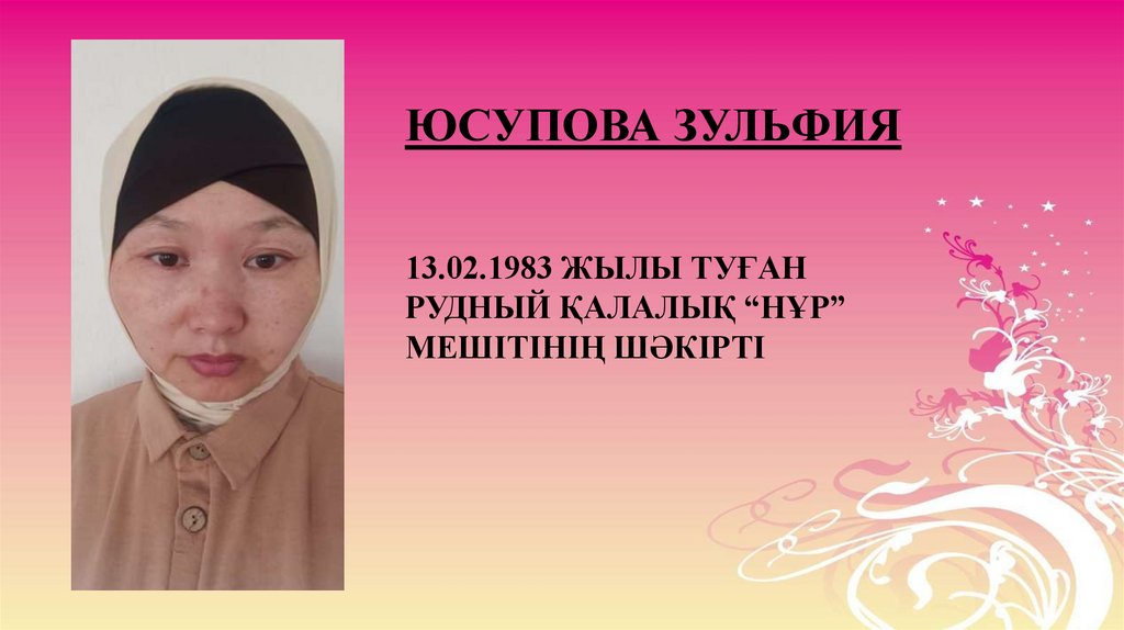 ЮСУПОВА ЗУЛЬФИЯ13.02.1983 ЖЫЛЫ ТУҒАН