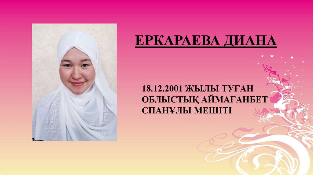 ЕРКАРАЕВА ДИАНА18.12.2001 ЖЫЛЫ ТУҒАН