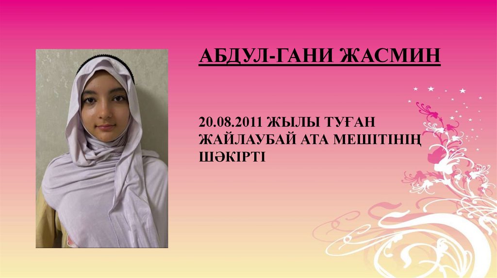 АБДУЛ-ГАНИ ЖАСМИН20.08.2011 ЖЫЛЫ ТУҒАН