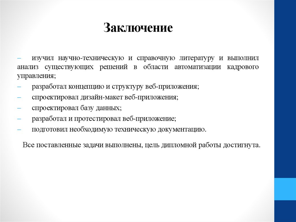 Все поставленные задачи выполнены, цель дипломной работы достигнута.