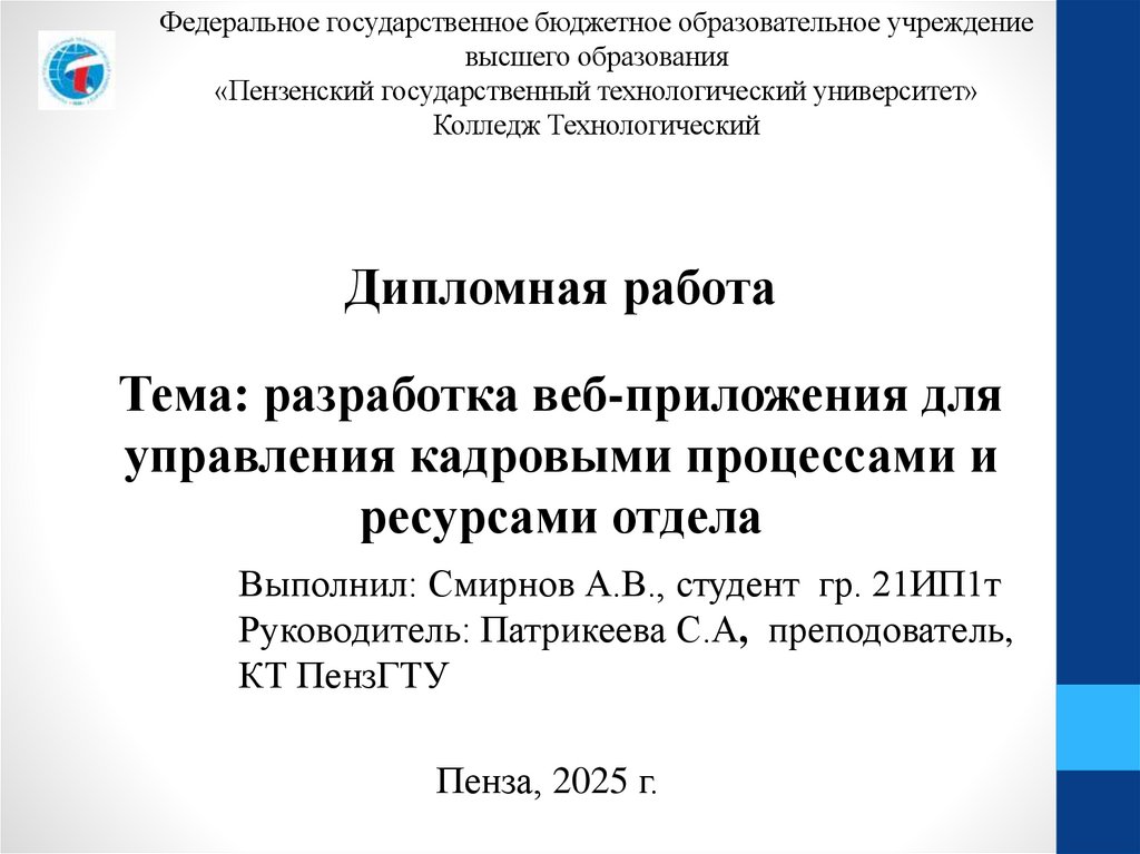 Актуальность темы обусловлена необходимостью разработкисовременного веб-приложения для автоматизации кадровых процессов в