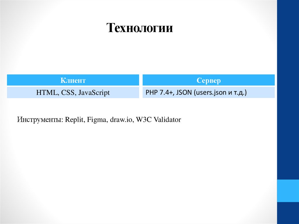 Инструменты: Replit, Figma, draw.io, W3C Validator
