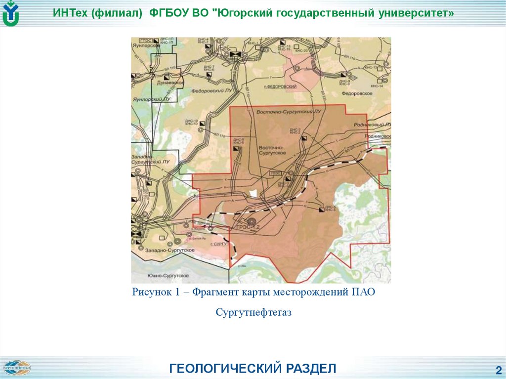 ИНТех (филиал) ФГБОУ ВО "Югорский государственный университет»Рисунок 1 – Фрагмент карты месторождений ПАО