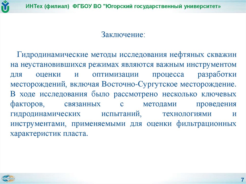 ИНТех (филиал) ФГБОУ ВО "Югорский государственный университет»Заключение: