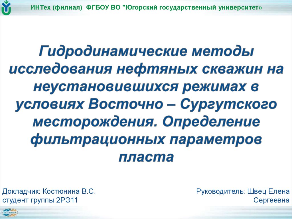 Гидродинамические методы исследования нефтяных скважин на неустановившихся режимах в Восточно-Сургутском месторождении