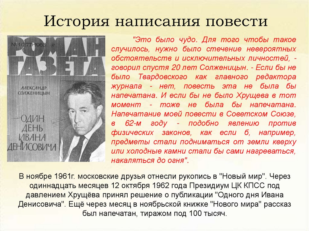 давлением Хрущёва принял решение о публикации "Одного дня Ивана