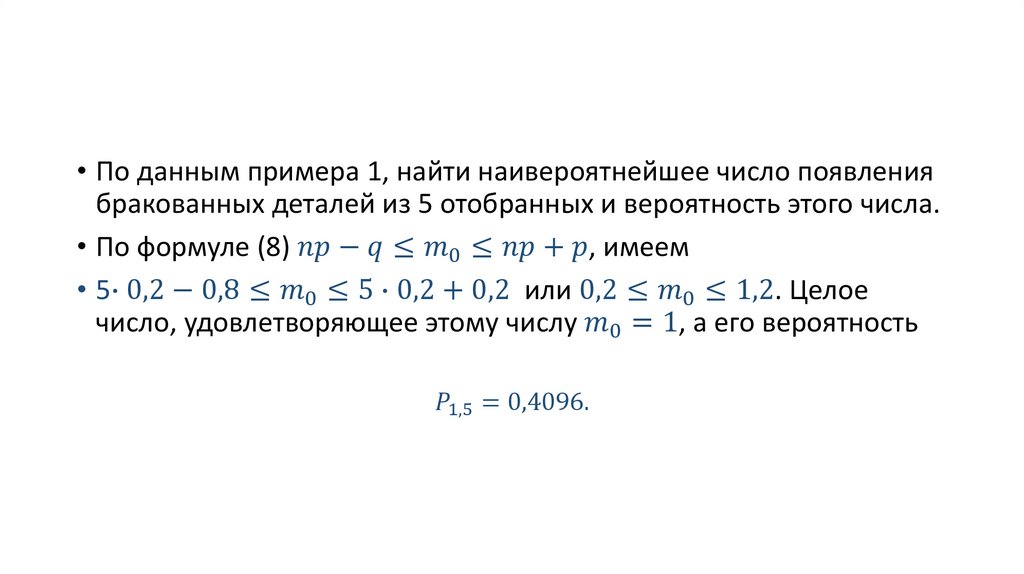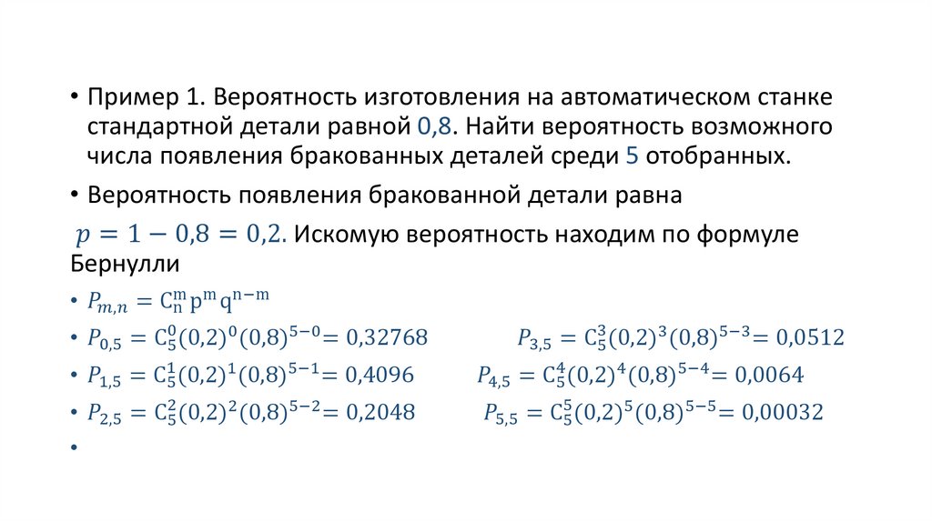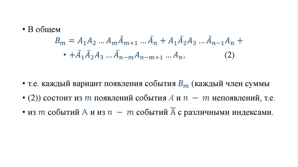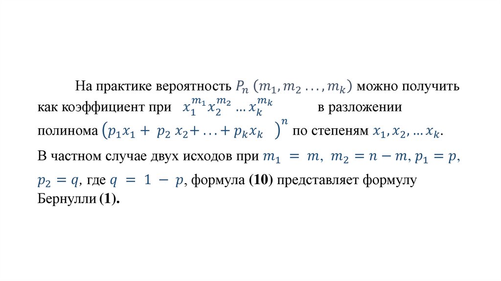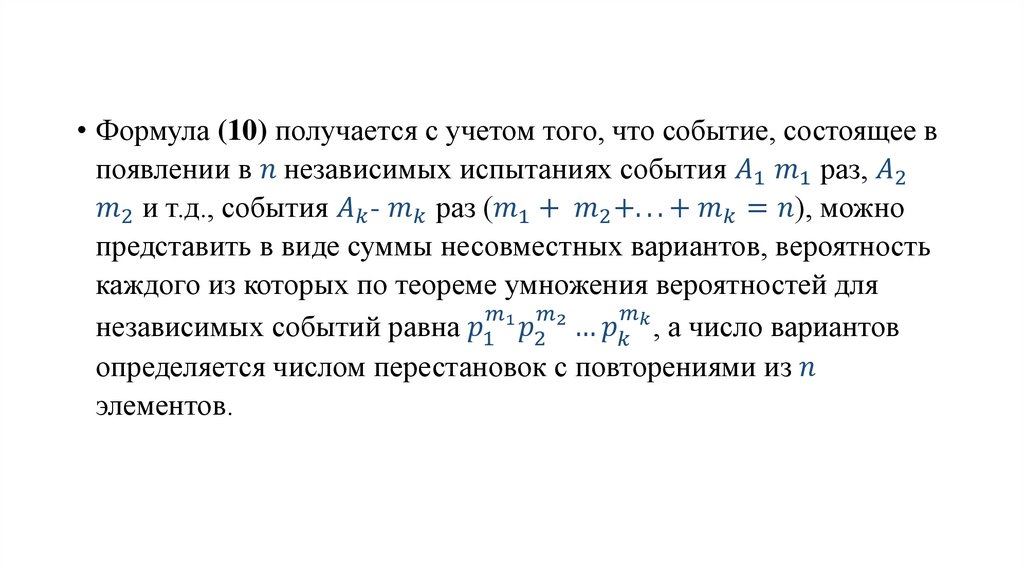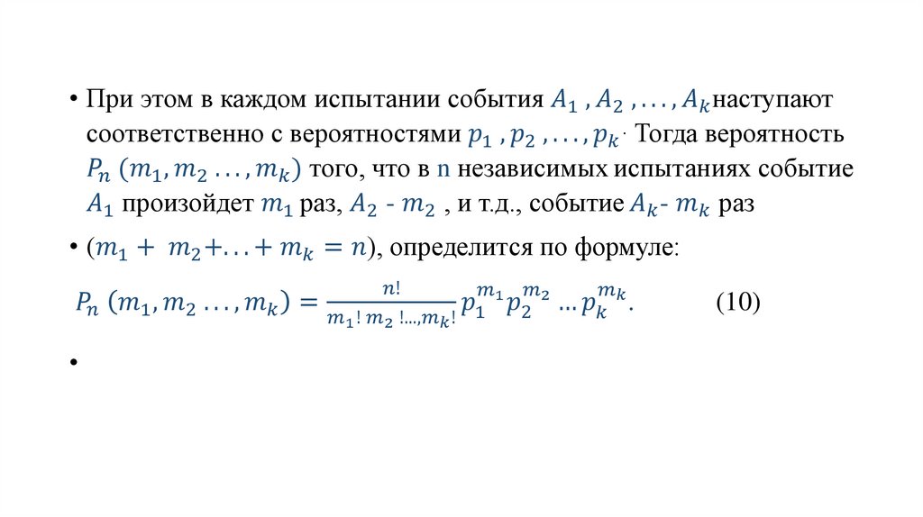 Если вероятность наступления события А в каждомиспытании не меняется в зависимости от исходов других,