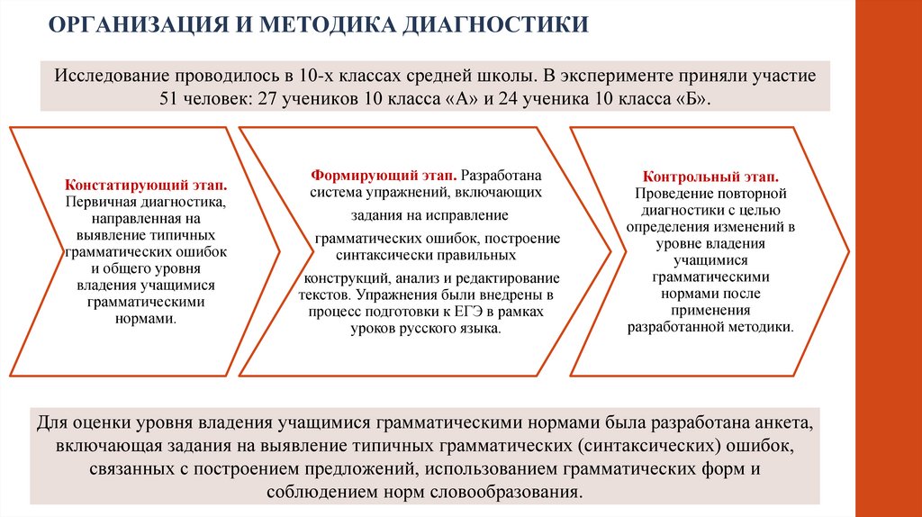 ОРГАНИЗАЦИЯ И МЕТОДИКА ДИАГНОСТИКИИсследование проводилось в 1 0-х классах средней школы. В эксперименте приняли участие