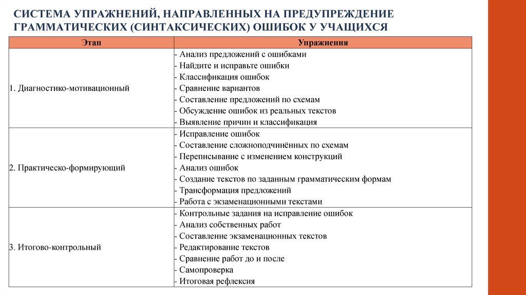 предупреждения грамматических и синтаксических ошибок в письменной речи