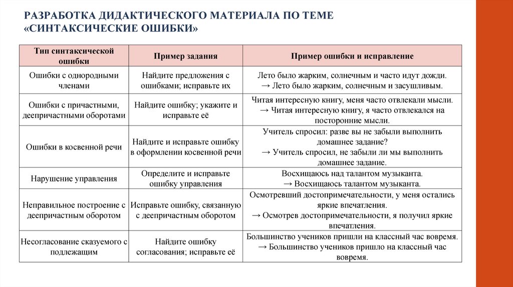 РАЗРАБОТКА ДИДАКТИЧЕСКОГО МАТЕРИАЛА ПО ТЕМЕ«СИНТАКСИЧЕСКИЕ ОШИБКИ»