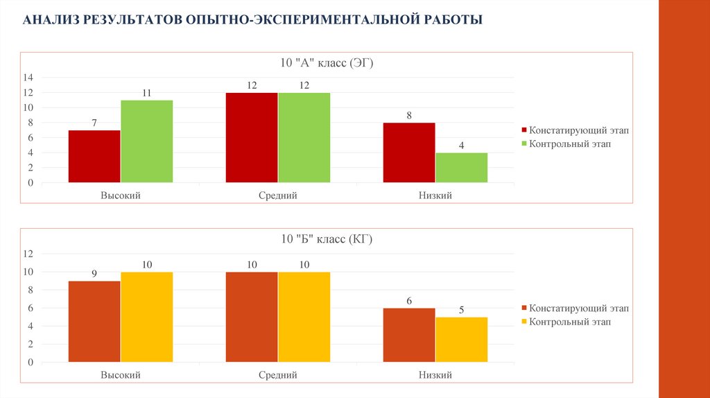 АНАЛИЗ РЕЗУЛЬТАТОВ ОПЫТНО-ЭКСПЕРИМЕНТАЛЬНОЙ РАБОТЫ1 0 "А" класс (ЭГ)
