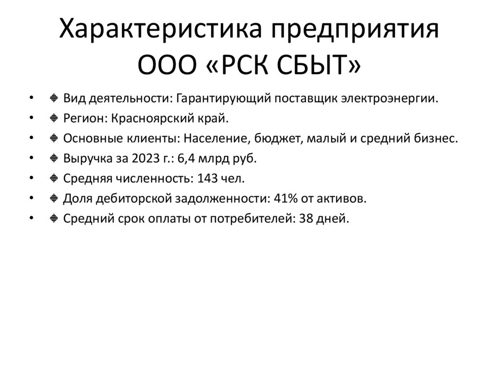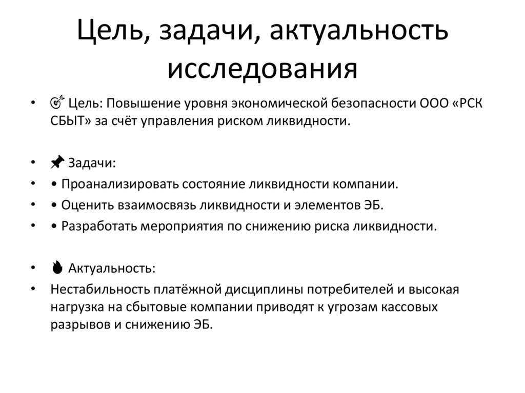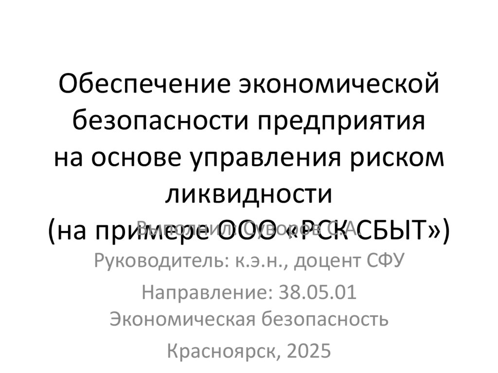 Обеспечение экономической безопасности предприятия на основе управления риском ликвидности (на примере ООО «РСК СБЫТ»)