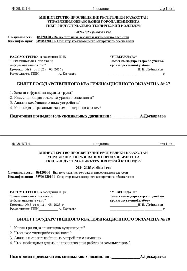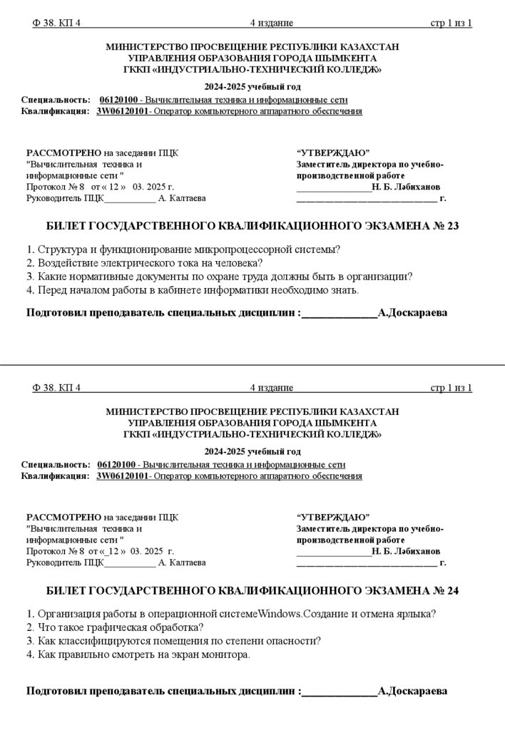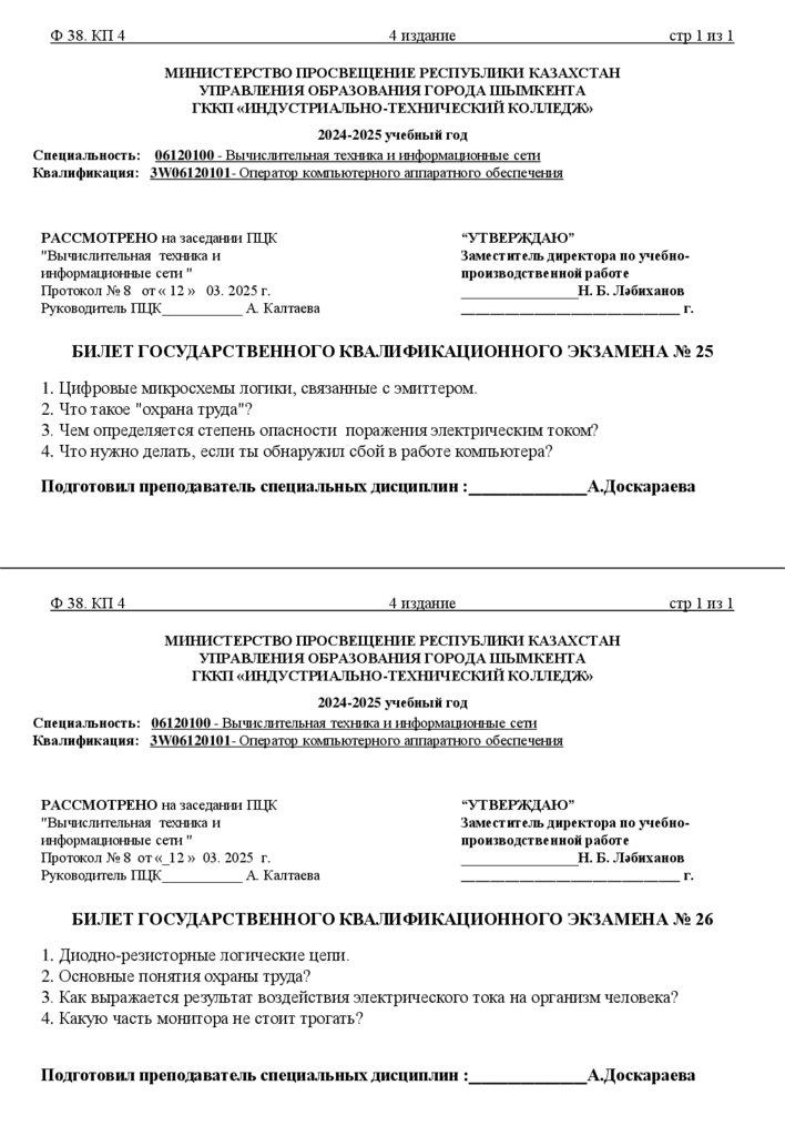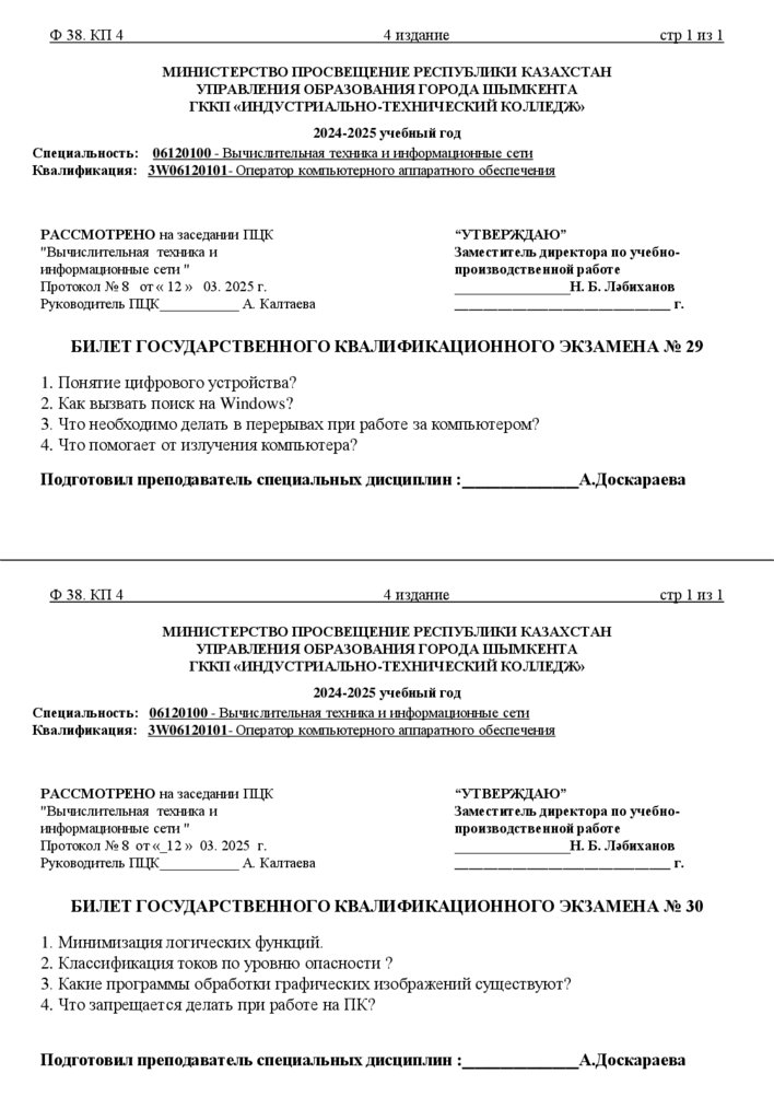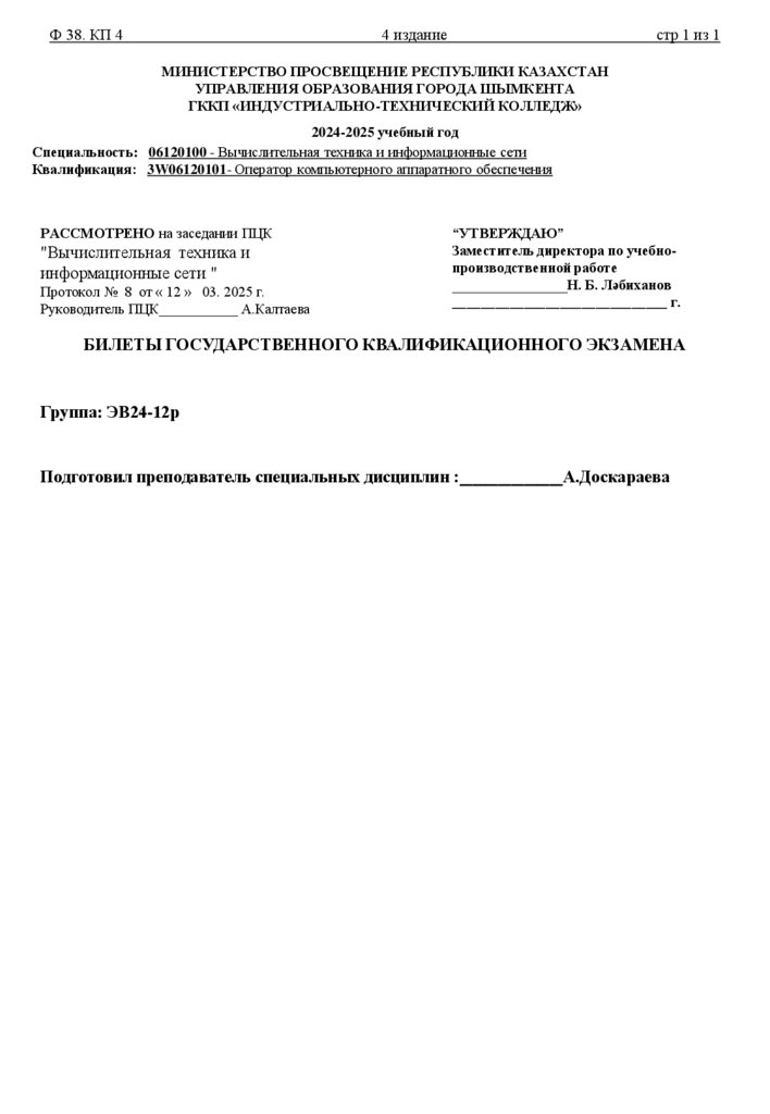 Подготовил преподаватель специальных дисциплин :________А.Доскараева