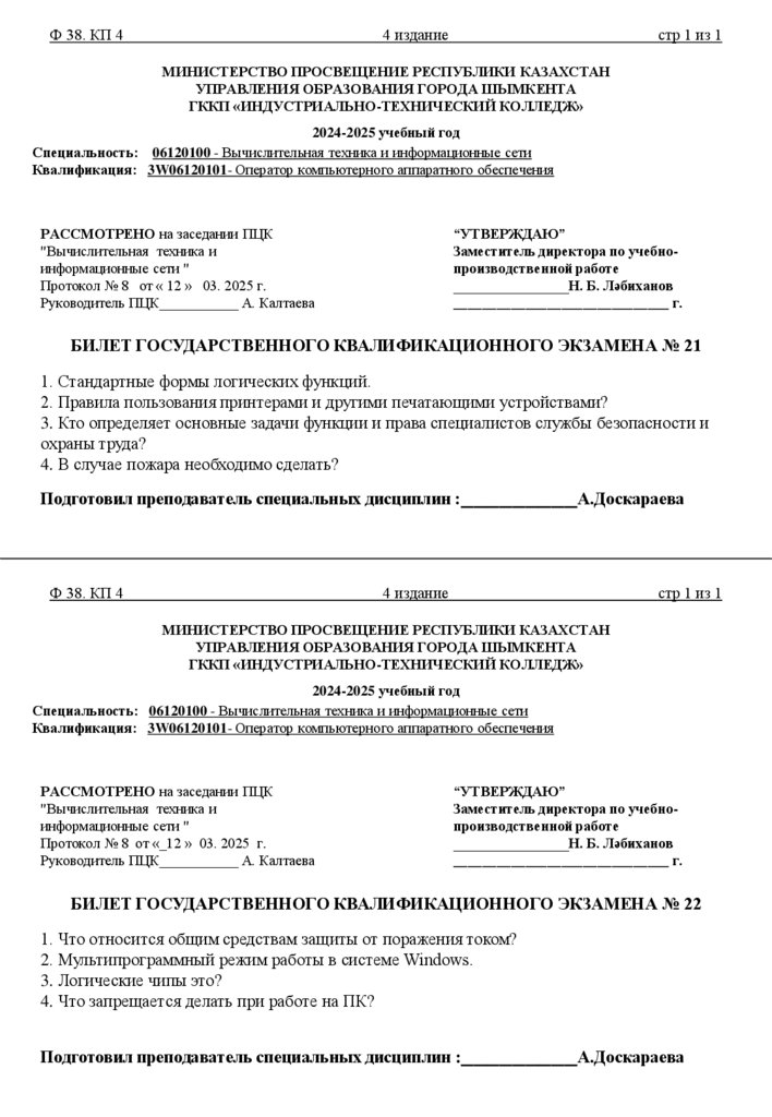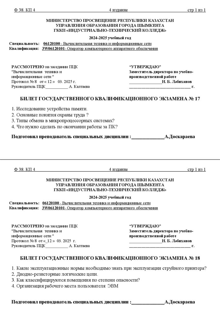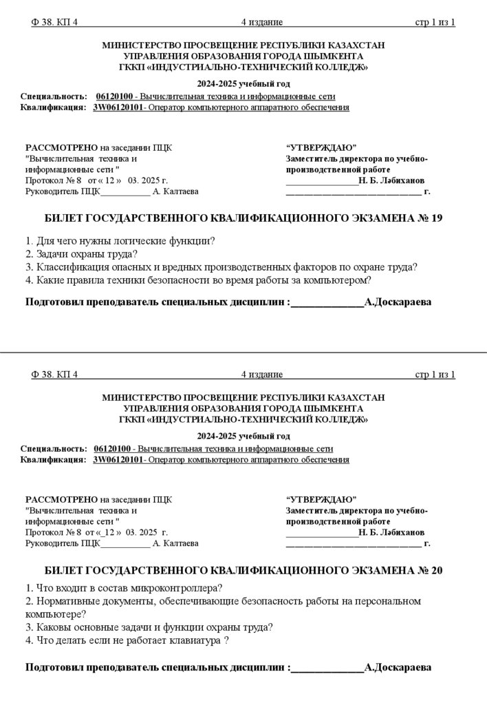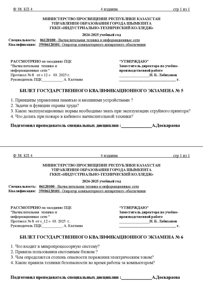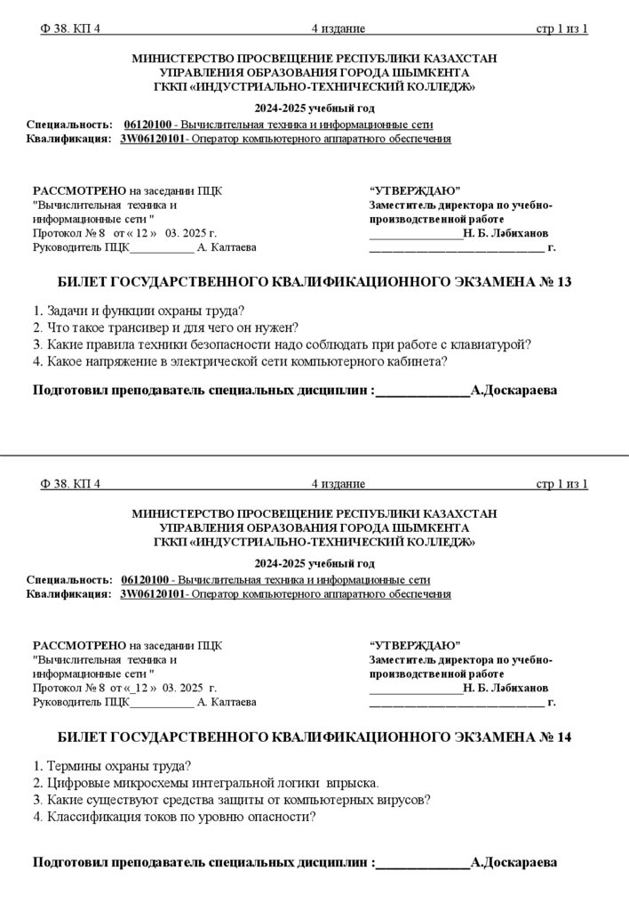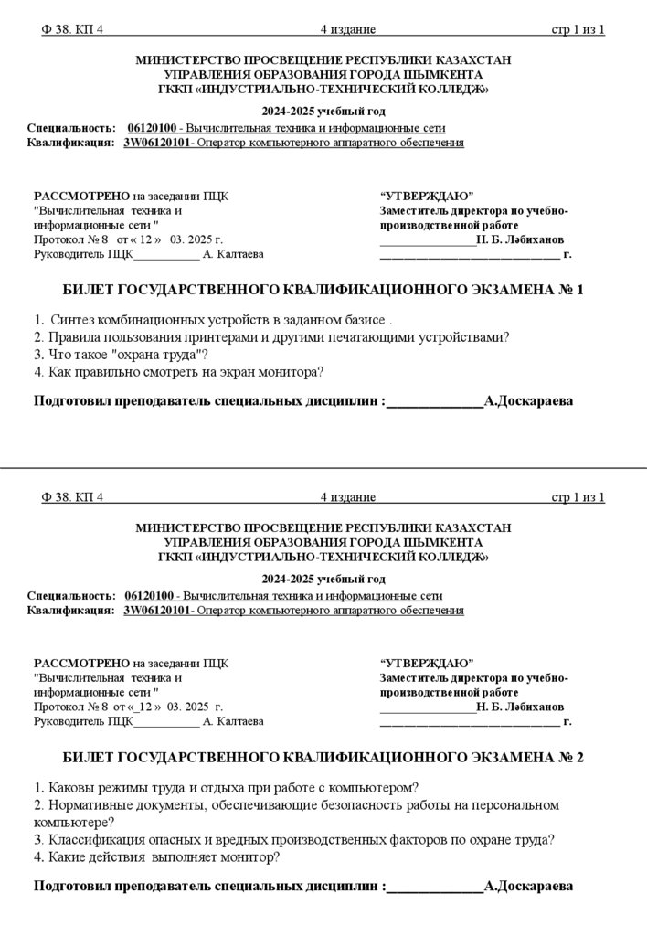 Подготовил преподаватель специальных дисциплин :________А.Доскараева