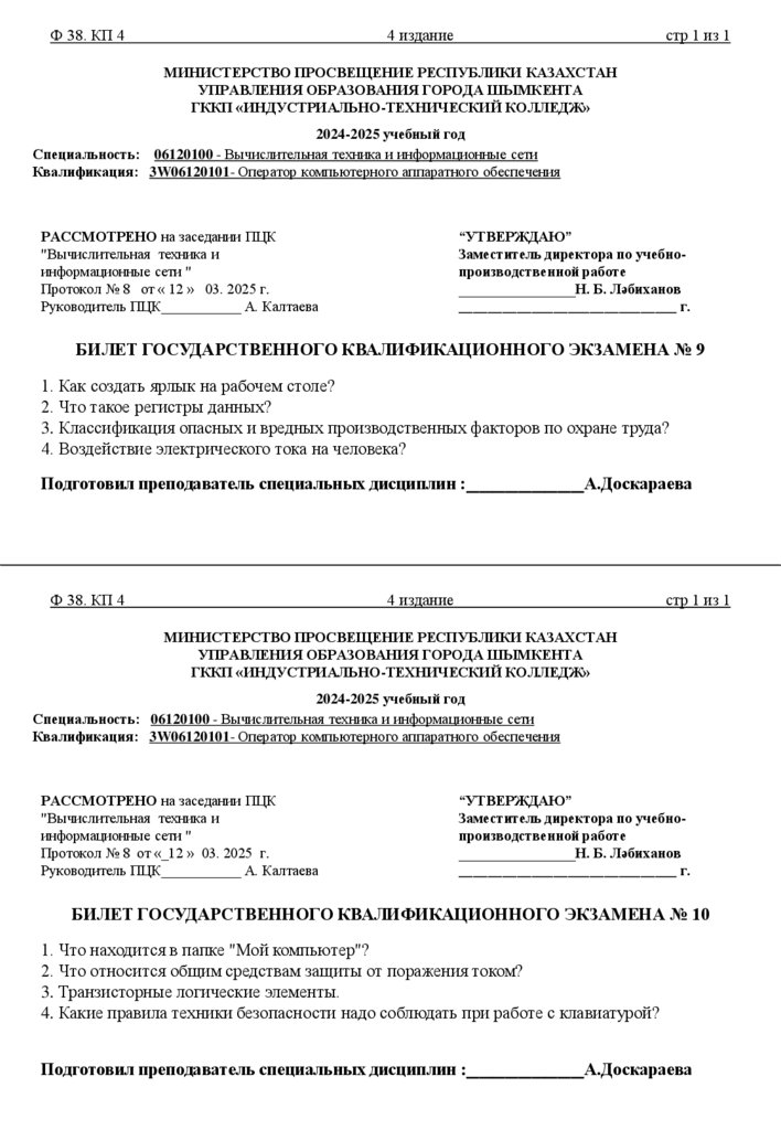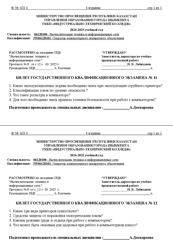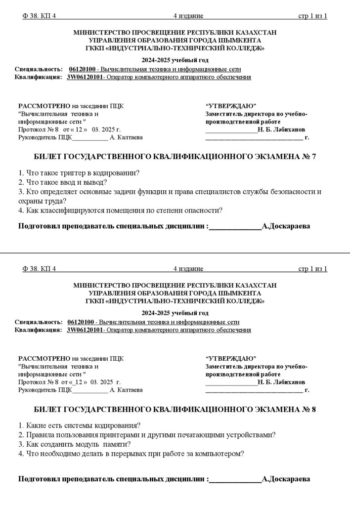 ГККП «ИНДУСТРИАЛЬНО-ТЕХНИЧЕСКИЙ КОЛЛЕДЖ»