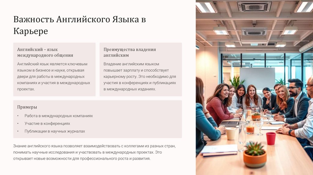 Подчеркивание важности знания английского языка и грамматики для успешной