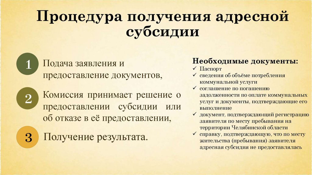 Процедура получения адреснойсубсидии
