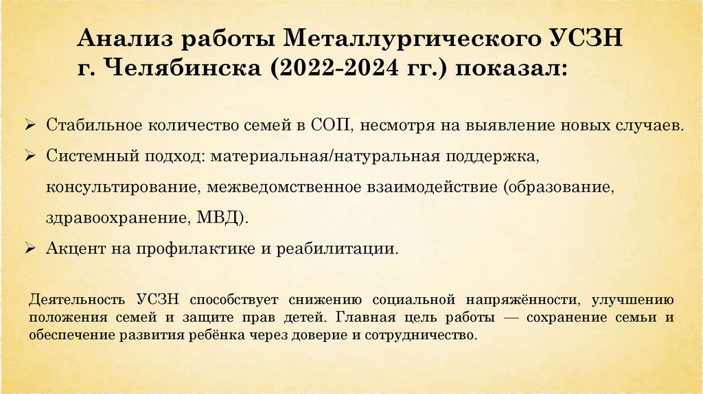 Анализ работы Металлургического УСЗНг. Челябинска (2022-2024 гг.) показал: